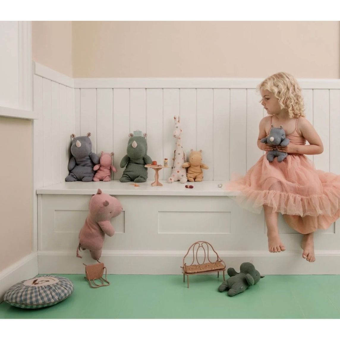 Mød dine nye Safari venner, skabt til at bringe glæde og hygge ind i dit hjem. Med deres bløde stof og livlige farver er de perfekte til både børn og voksne. De sidder stabilt takket være bønnerne i bunden og er altid klar til et kram.