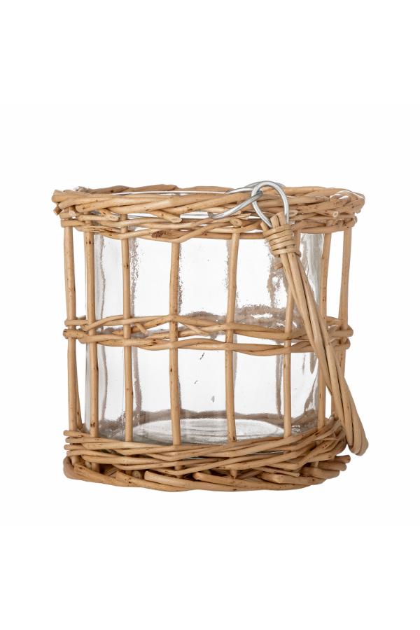 – Glasstage med dekorativ rattanflet for et hyggeligt lanterne-look