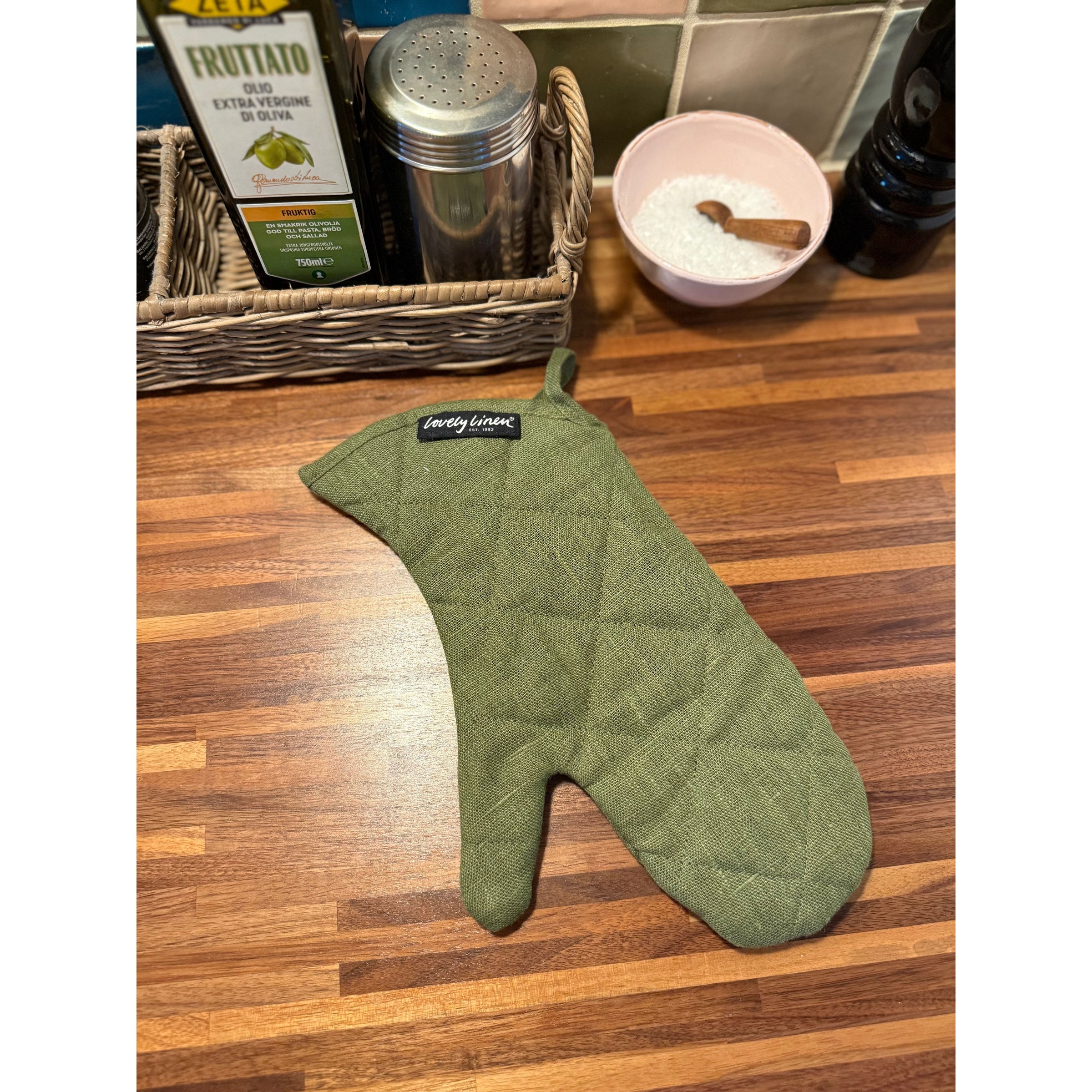 Gør din madlavning både stilfuld og sikker med denne elegante ovnhandske. Den er skabt til at modstå selv de mest krævende køkkenudfordringer, samtidig med at den tilføjer et strejf af elegance til dit køkken.